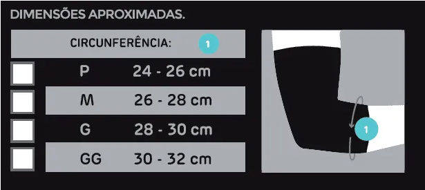 Instruções de uso: Vista a cotoveleira até a posição medial entre o punho e o ombro de tal forma que ela fique confortável e ajustada à sua anatomia.