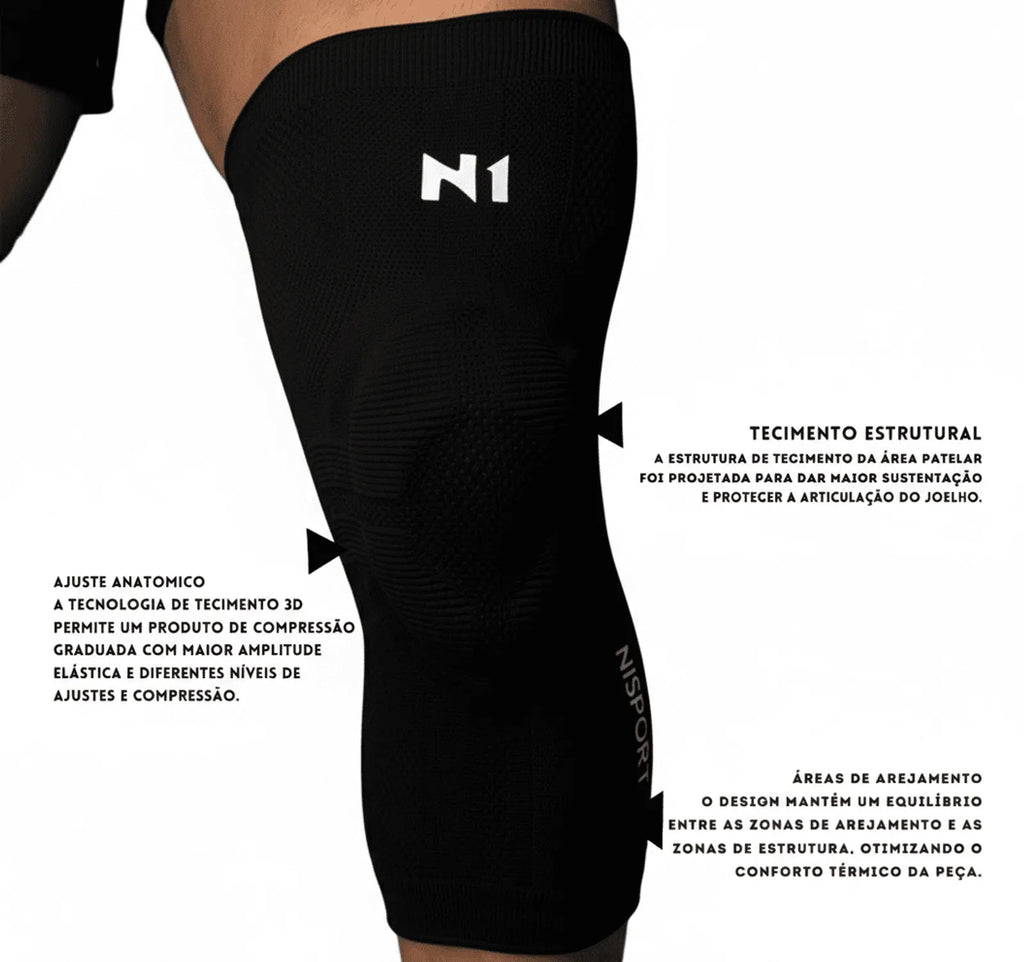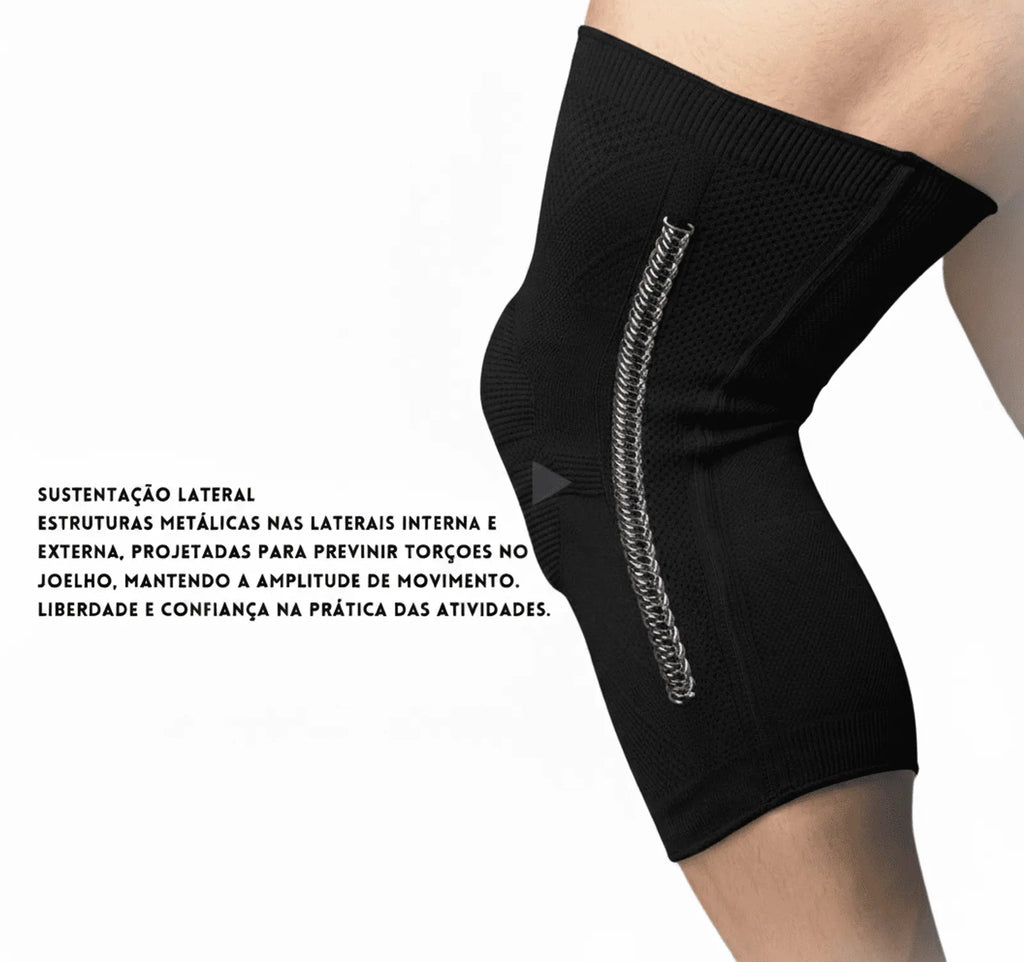 - Elastano de alta tecnologia possibilitando conforto e segurança nas articulações.